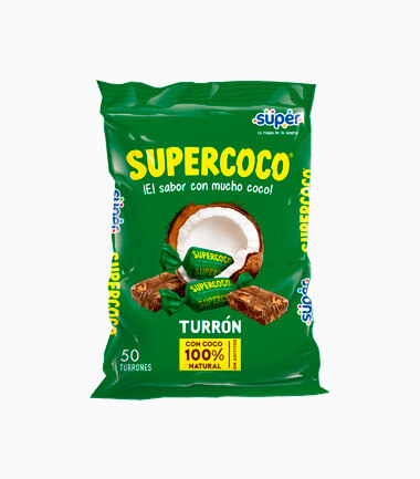 Es mucho mas que una golosina, es una tradicion que te hace recordar y vivir momentos especiales. Este bombon esta hecho de coco natural, su indescriptible sensacion hacen que nuestro Turron Supercoco sea sencillamente insuperable.